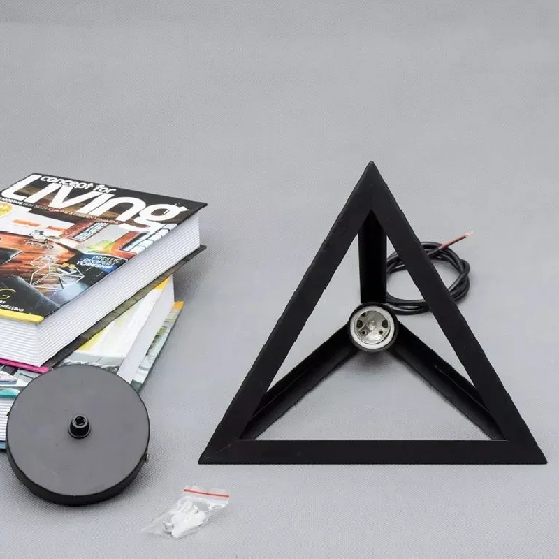 LÁMPARA COLGANTE ESTILO INDUSTRIAL TIPO TRIÁNGULO DE HIERRO (CON AMPOLLETAS)